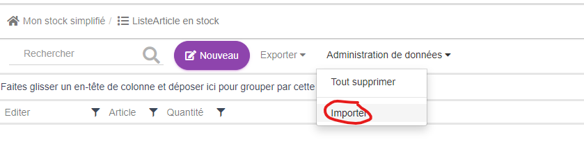 Dans le menu "Administration de données", cliquer sur "Importer".