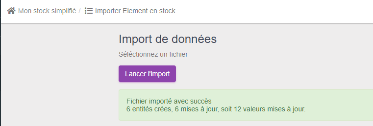 Une fois l'import effectué, la liste affichée permet de voir les éléments.