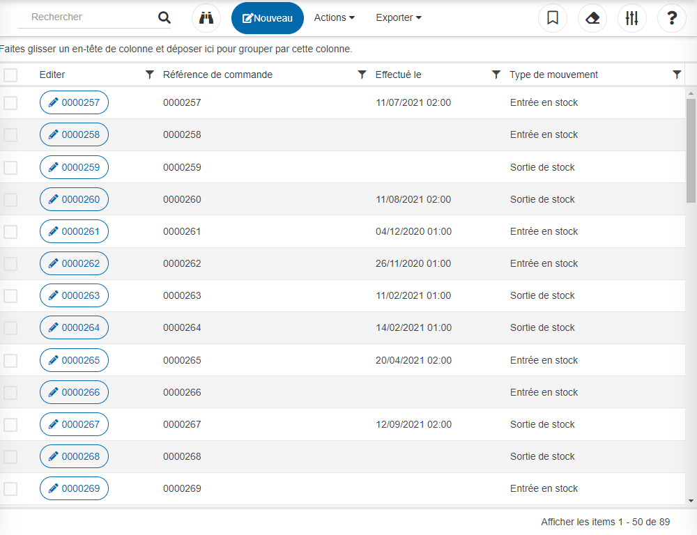 Dans la réalité, un mouvement de stock est souvent réalisé via un papier listant des informations de référence de commande et la liste des éléments rattachés avec une quantité.