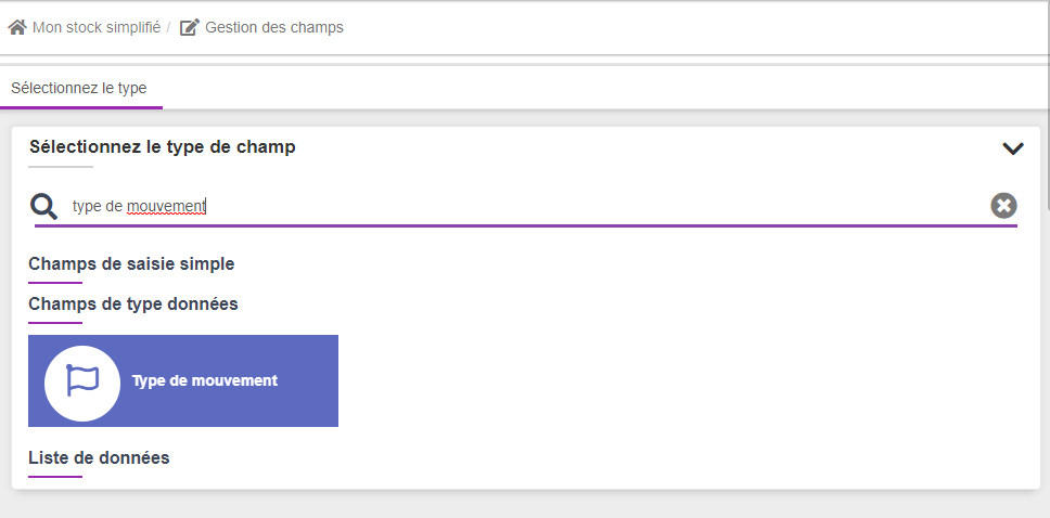 puis sélectionnez le champ "Type de mouvement"