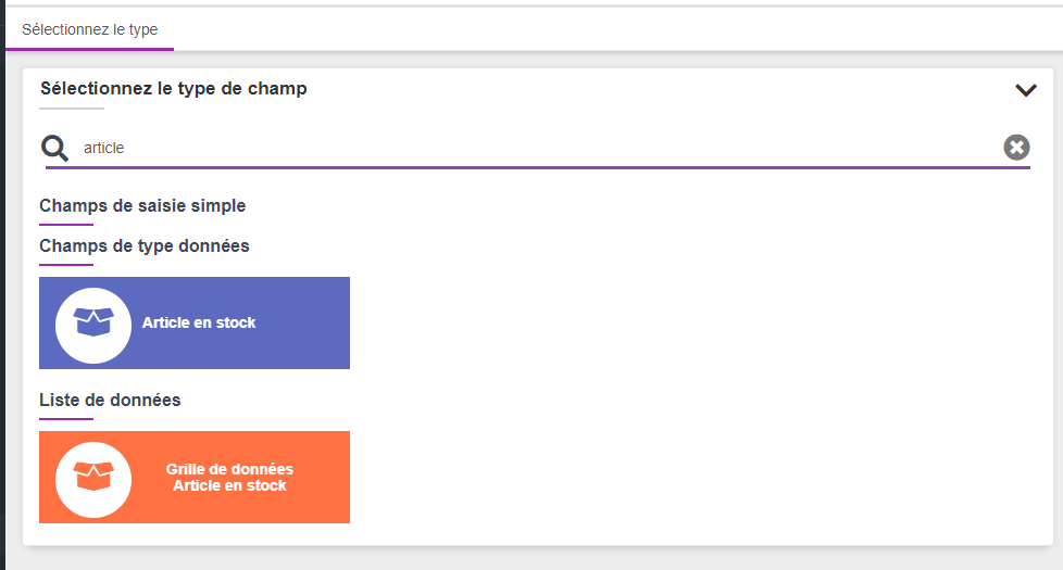 Afin de créer le champ "Article", nous pourrions être tenté de créer une simple champ texte. Cependant, pour éviter les fautes de frappe et garantir que le lien entre un article du bon de mouvement et un article de la gestion des stocks soit bien faite,