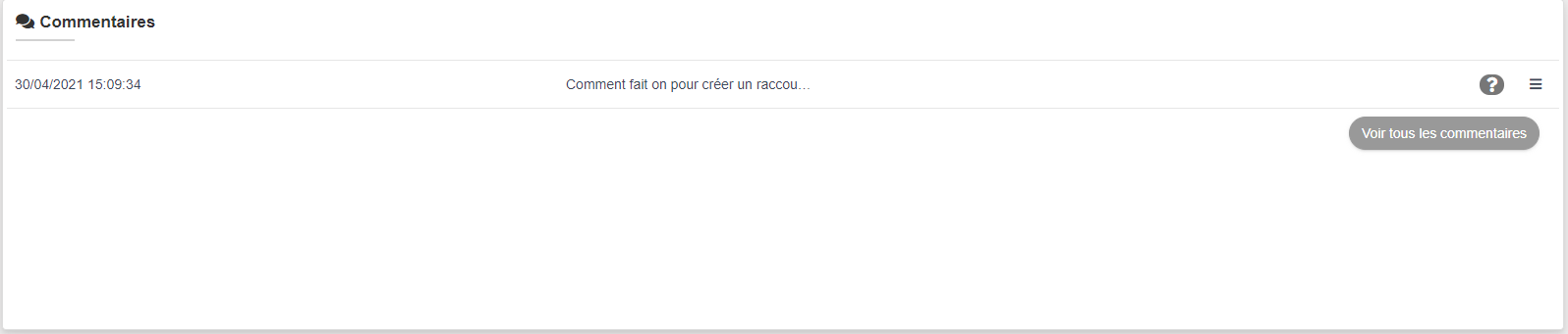 Par défaut seul les 5 derniers sont affichés, le bouton "Voir tous les commentaires" permet d'afficher la liste complète et leurs états de traitement.